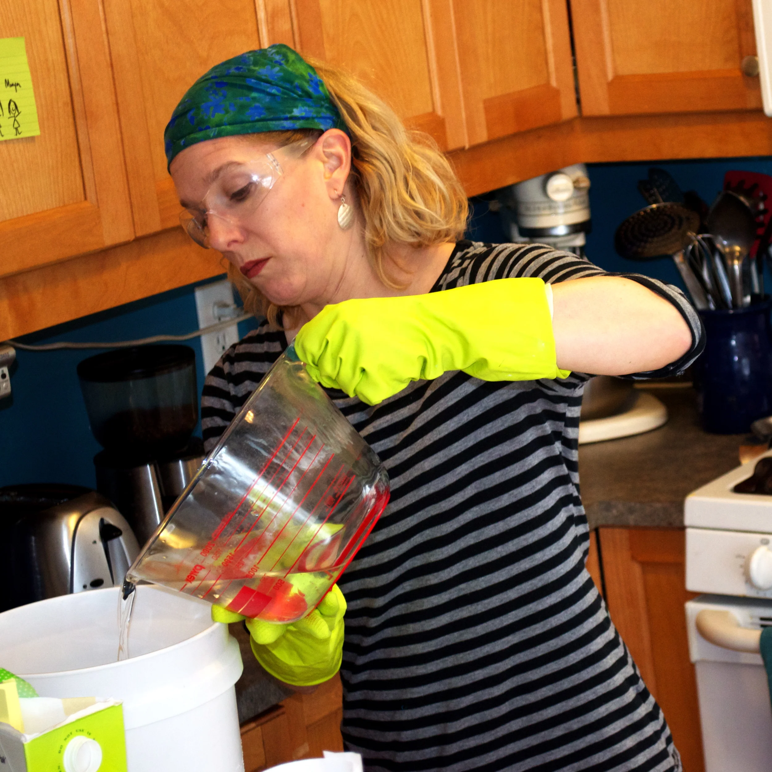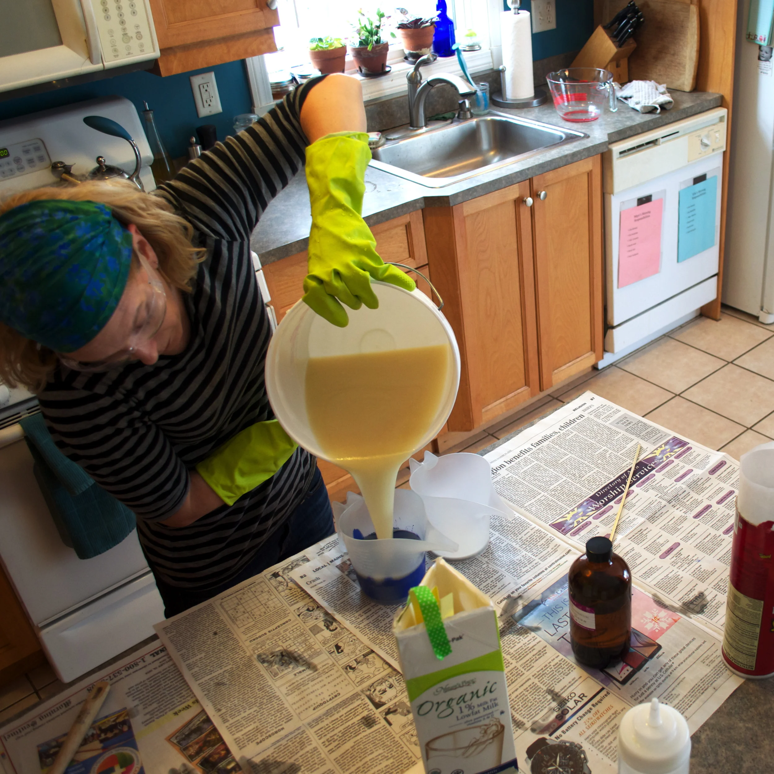 Take note of my very serious face. I was trying very hard not to swear about the soap pouring out of the bottom of the mold while my sweet, eleven-year-old daughter was photographing the experience.