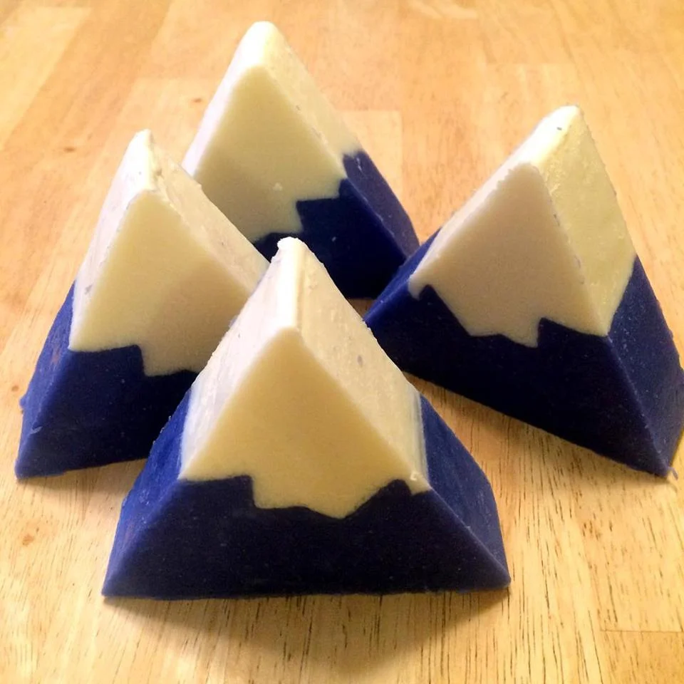 So, I finally decided to bite the bullet and enter one of the spectacular Amy Warden's Soap Challenge Club challenges. The challenge this month spoke to me, because it is a Winter Wonderland theme. Since I live in Maine, where we are in winter for about 10 months out of the year, I am flooded with inspiration day in and day out, every time I look outside. But that's not exactly why it spoke to me. The truth is, I have been wanting to make a soap that resembles a very famous logo of one of our state's most beloved ski resorts for quite some time now. The problem is, I had no idea how I was going to tackle this, so I spent many a weary evening obsessing while tossing and turning and running design ideas through my rattled mind. And let me tell you, this required some engineering, which is definitely not my strong suit. So, check out what I worked out...